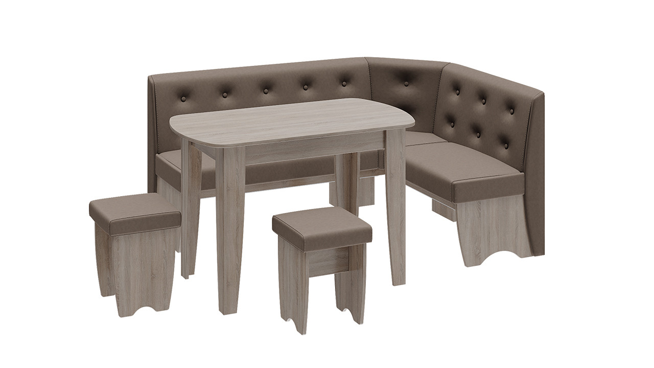 Кухонный уголок «Барселона» Сонома Трюфель/Кожзам Коричневый