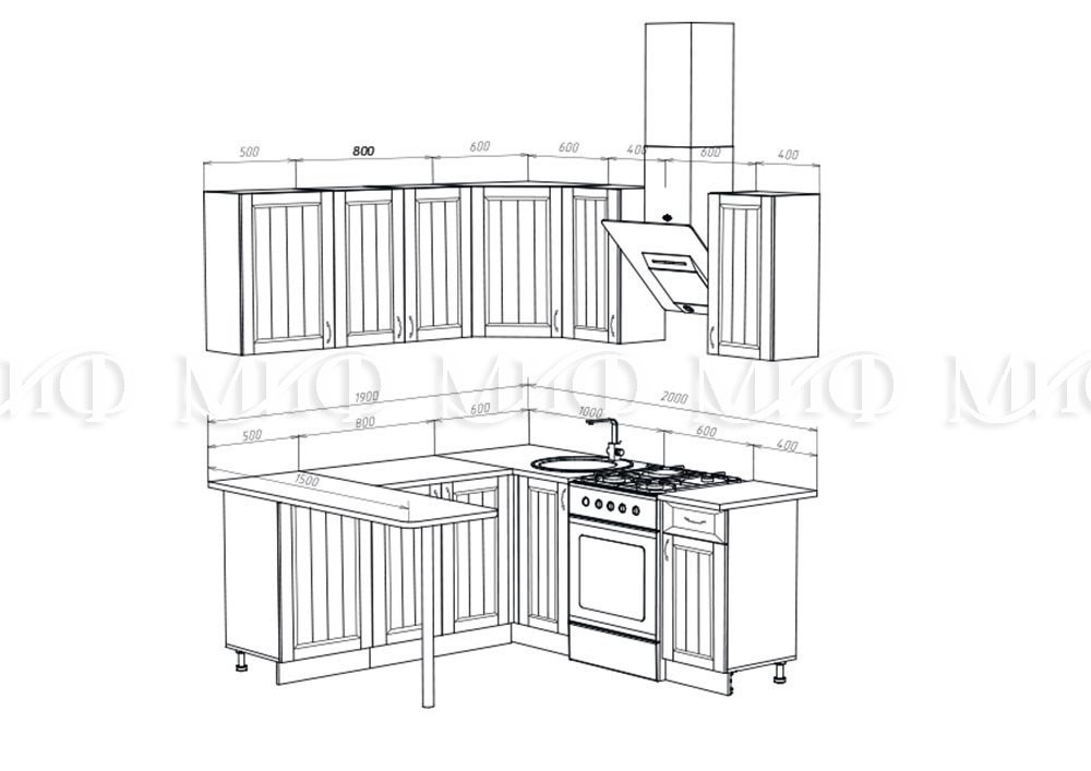 Кухонный Гарнитур Настенька Угловая 1900 x 2000 мм МДФ/Разные Цвета